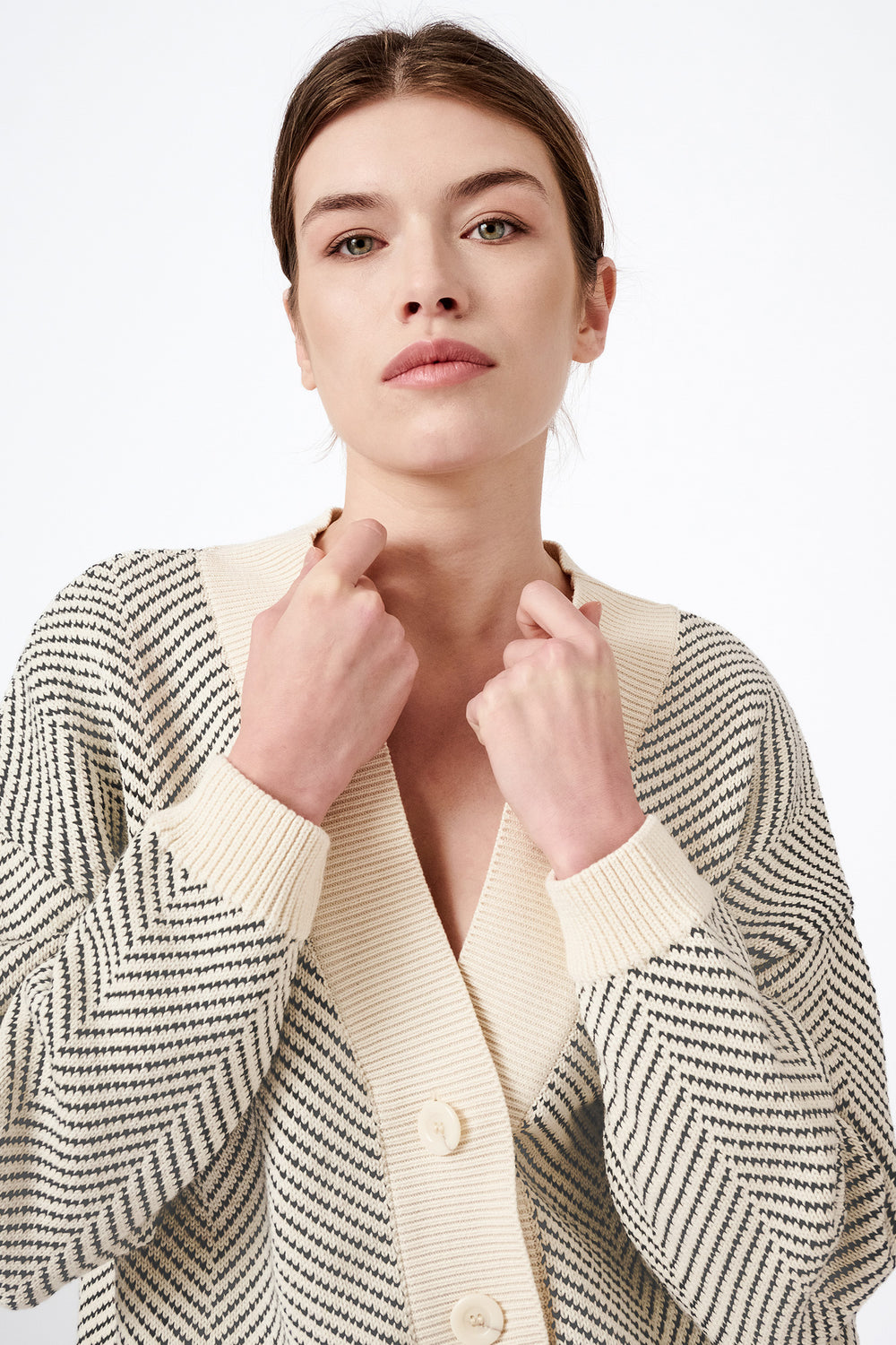 "This cardigan coat is a wonderful piece! The knit feels pleasant on the skin, the cut falls smoothly and the length gives it a modern, relaxed look. The white shade is easy to style and works for many occasions. It’s comfortable, very well-made and looks even better in person. I’m very happy to have it!"